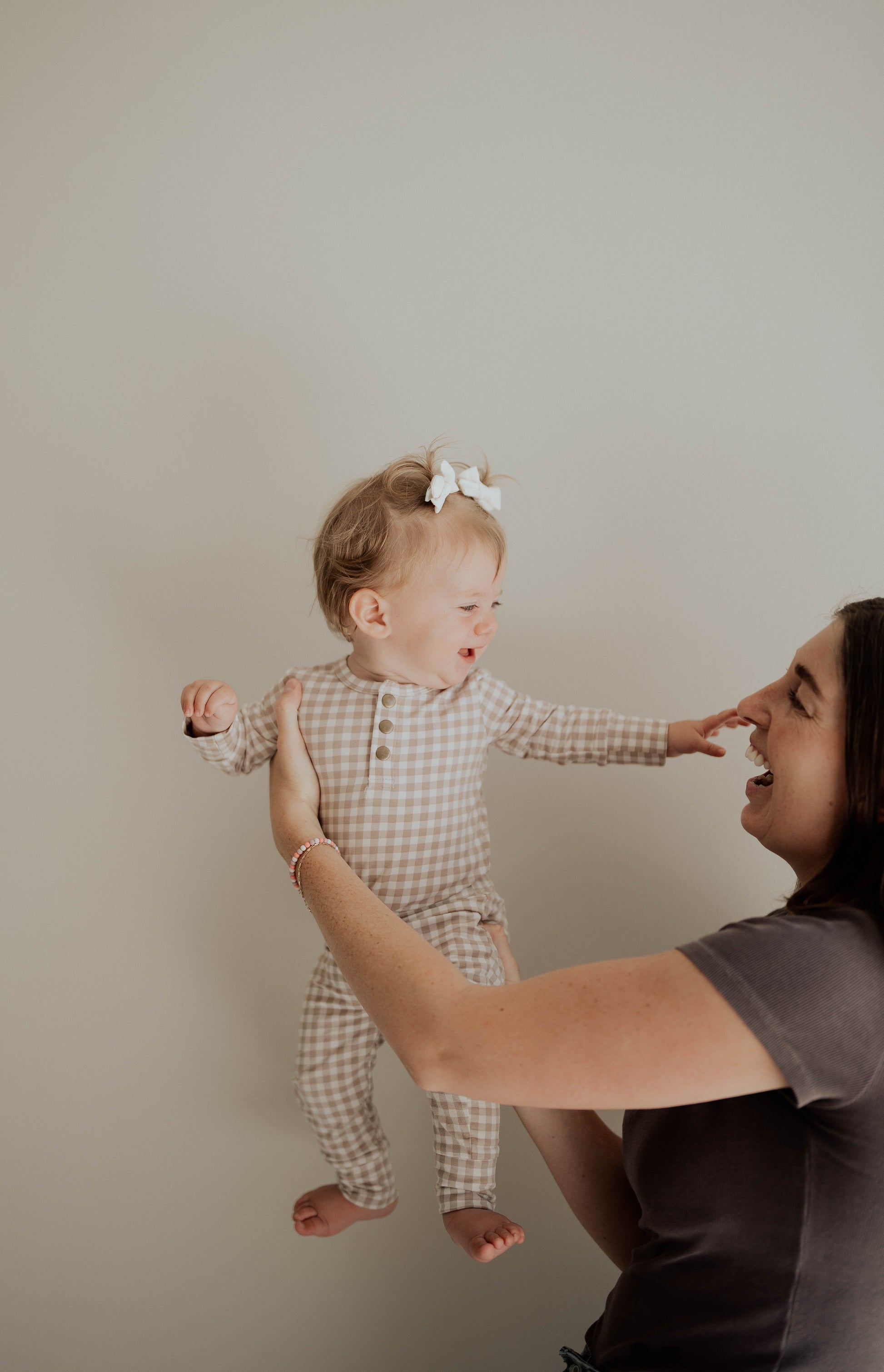 For your littlest babes, we added mitten cuffs on the sleeves (size 0-3) and footie pants (size 0-3 & 3-6) so there's a couple less things you have to worry about Mama. Easy and effortless is our goal!