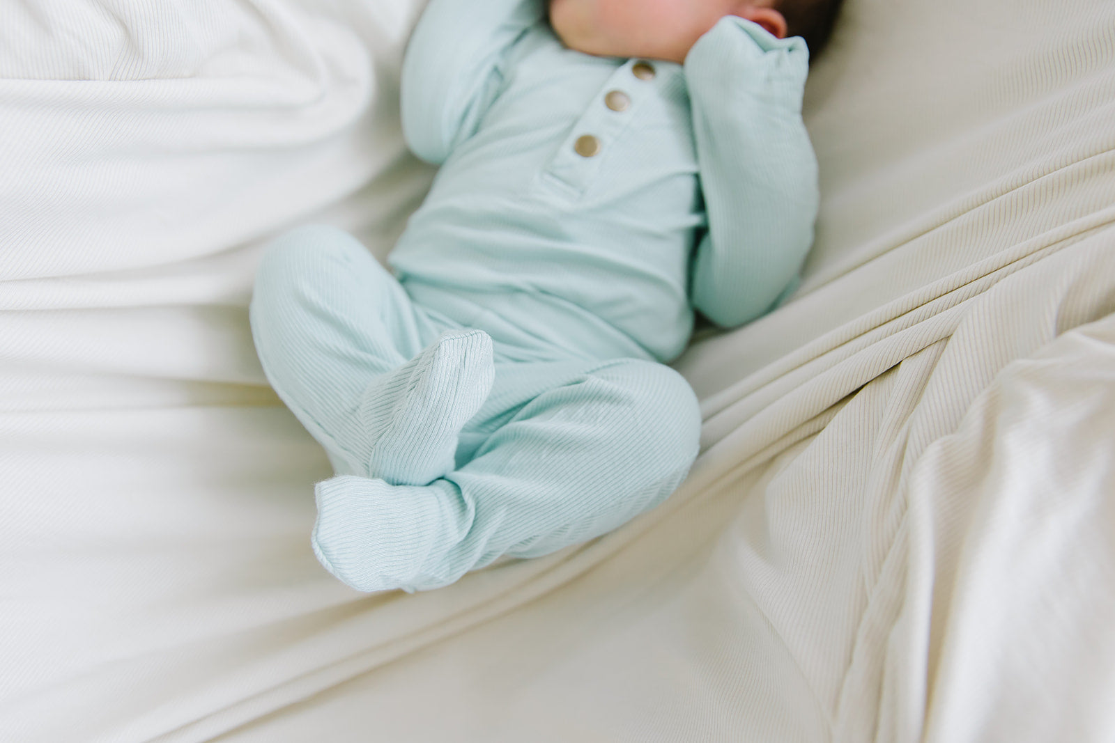 For your littlest babes, we added mitten cuffs on the sleeves (size 0-3) and footie bottoms (size 0-3 & 3-6) so there's a couple less things you have to worry about Mama. Sizes 0-3, 3-6, and 6-12 all have the onesie style top so you don't have to constantly adjust the shirt as you lift baby up over and over. Easy and effortless is our goal!