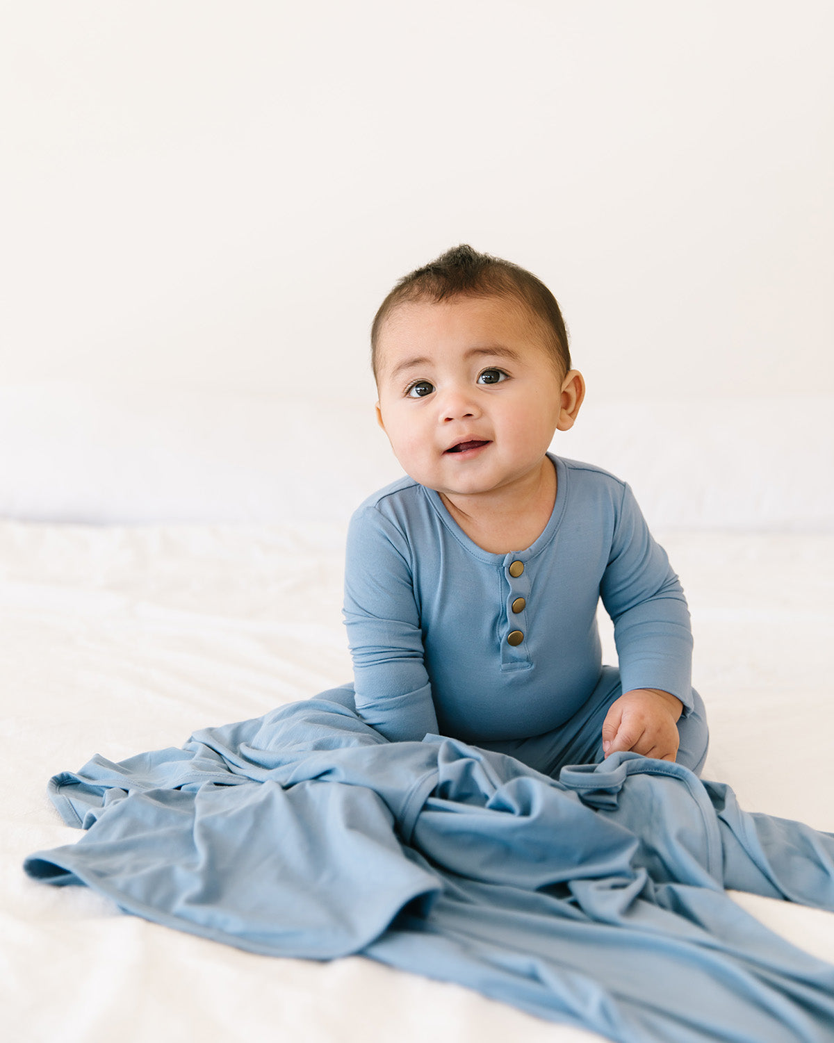 Our daughter was born a few weeks ago and your knotted sleeper and swaddle blanket set were the first thing I reached for when dressing her for the first time. I had bought several other potential “first outfits” for her but nothing else even came close to being as soft and comfortable. Now that she's a little older she wears her Quinn St. two-piece sets all the time. Her Quinn St clothes are my absolute favorites.