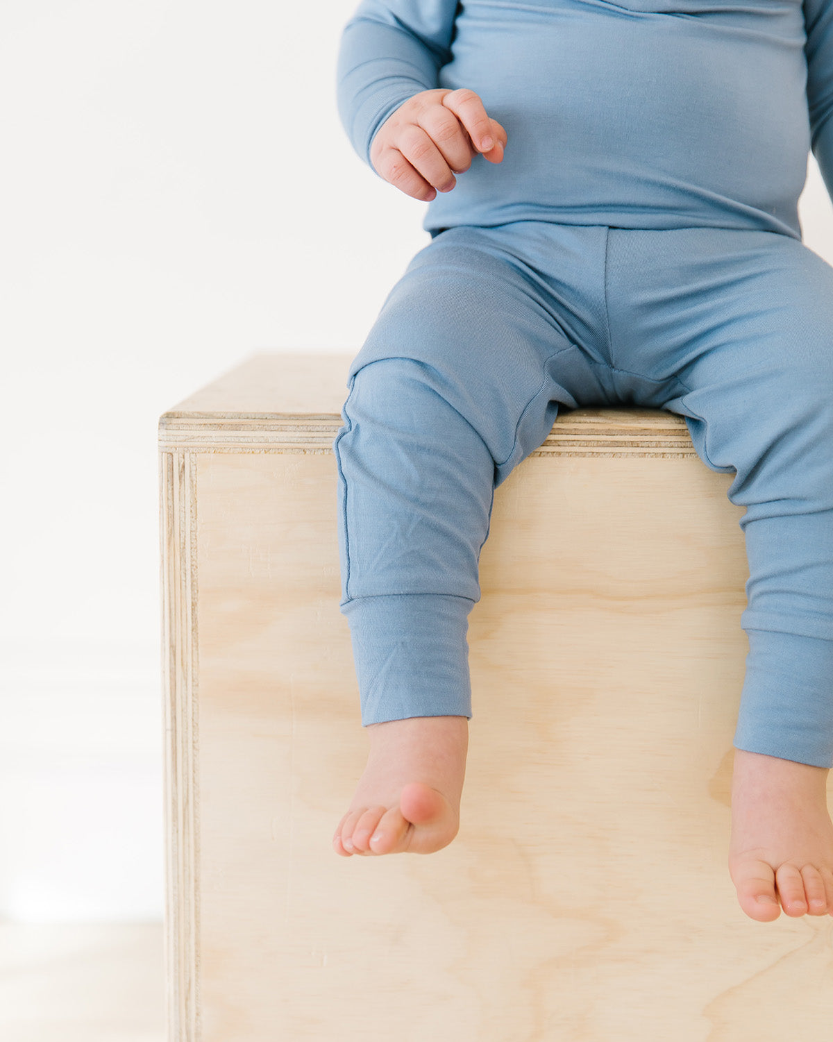 Our cozy two-piece sets are the perfect, effortless outfit. Babies love them because the fabric is silky soft, breathable, and stretchy. Moms love them because of how easy they are to put on and off. Functional snaps (no fumbling with buttons here!) on the tops and comfy bottoms. You get all the benefits of our bamboo/spandex fabric and sizes can easily go beyond normal range because of the stretchy fabric. Baby lounge sets for the win!